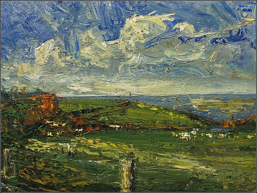 Self portrait- the artist painting flowers with a knife 54"x48"